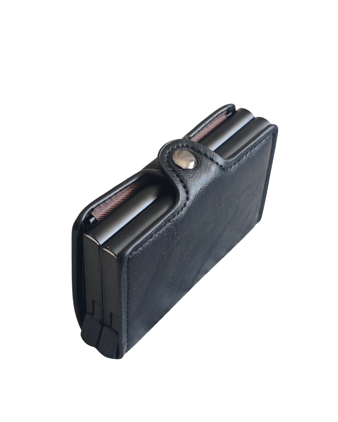 Ez a fekete bőr kártyatartó-pénztárca innovatív kialakításával és minőségi anyaghasználatával tűnik ki. Strapabíró és megbízható, így hosszú távon megőrzi elegáns megjelenését. Mutatós és praktikus választás mindenki számára, aki értékeli a stílust és a funkcionalitást egyaránt. LUXORAWallet
